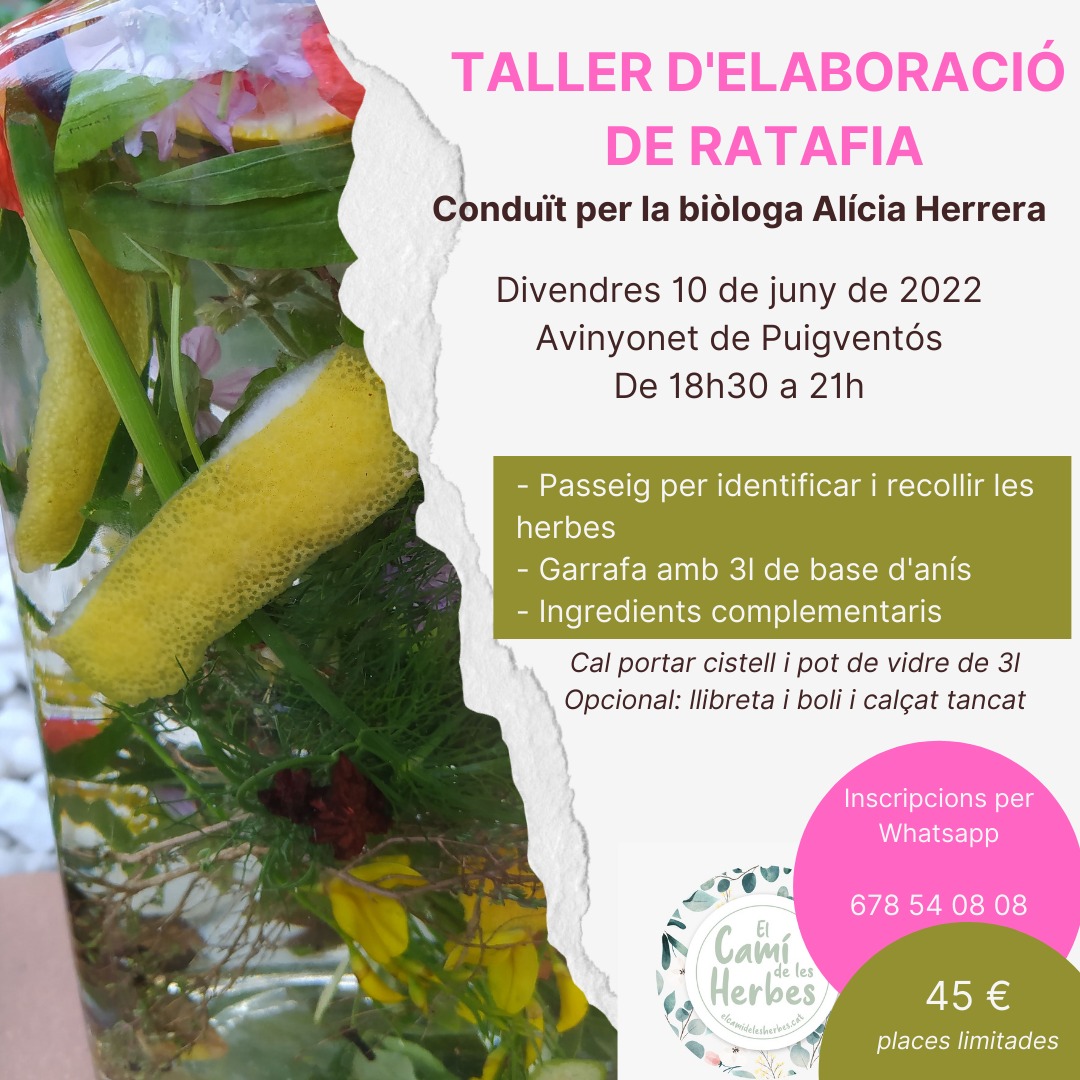 Us informem del Taller d'elaboració de ratafia que tindrà lloc el proper 10 de juny a Avinyonet de Puigventós. L'activitat serà conduïda per Alícia Herrera (biòloga).