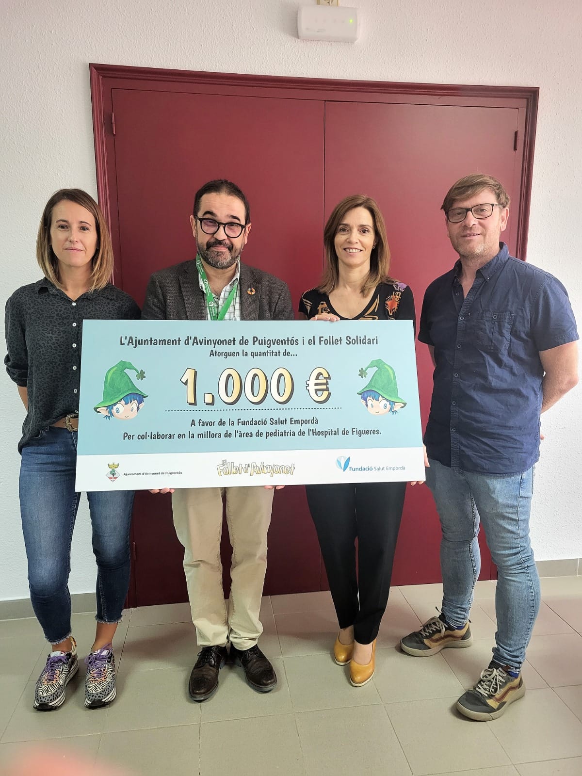 Ens complau anunciar-vos que ahir, 19 d'octubre, l'Ajuntament d'Avinyonet de Puigventós va fer entrega d'un "xec" per valor de 1.000 euros a la Fundació Salut Empordà per a col·laborar amb les despeses de millora de l'àrea de pediatria de l'Hospital de Figueres.