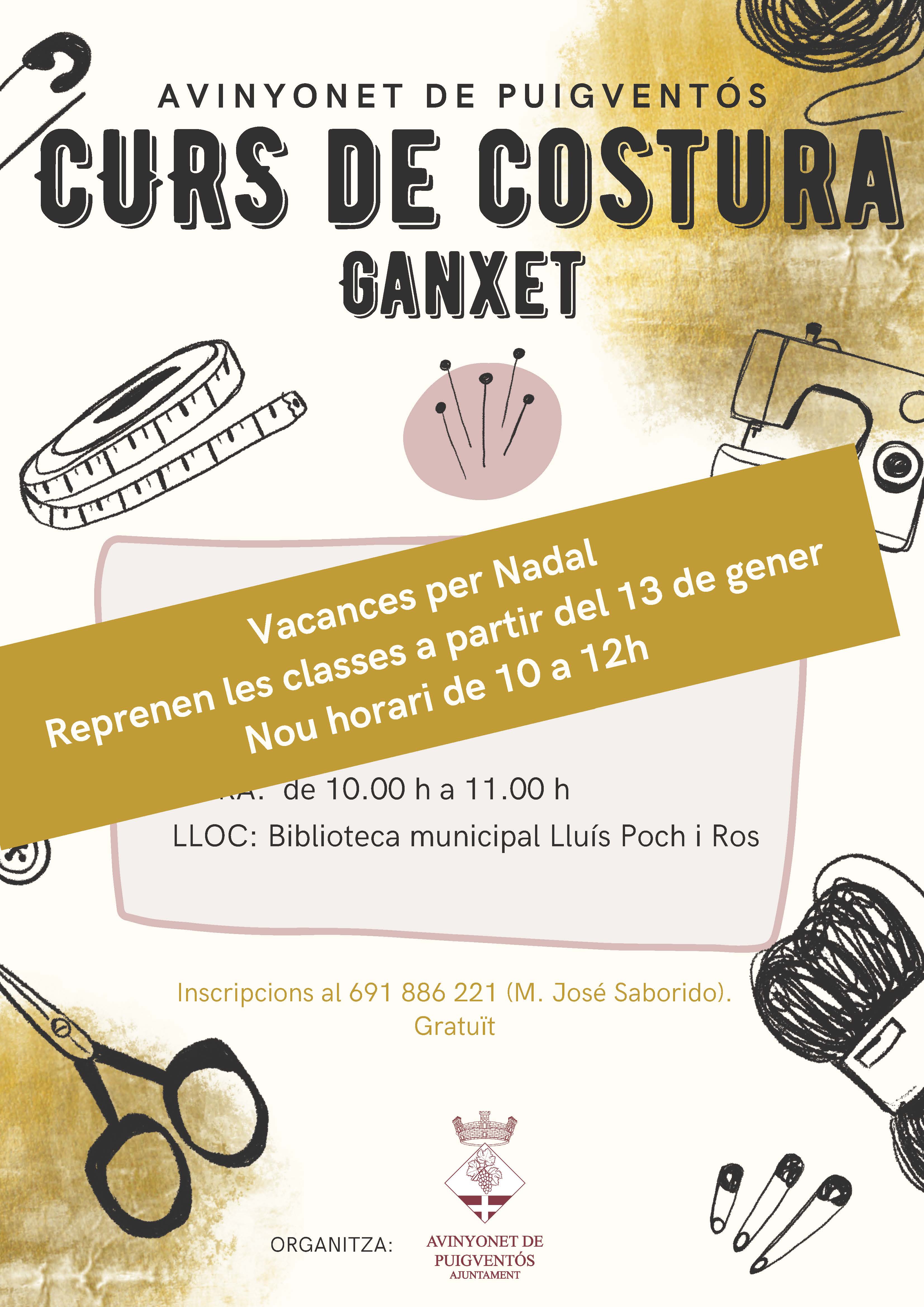 Aprofitem l'avinentesa per informar d'un canvi d'horari. Les classes s'impartiran a la biblioteca municipal Lluís Poch i Ros, els dilluns, de 10.00 h a 12.00 h.
