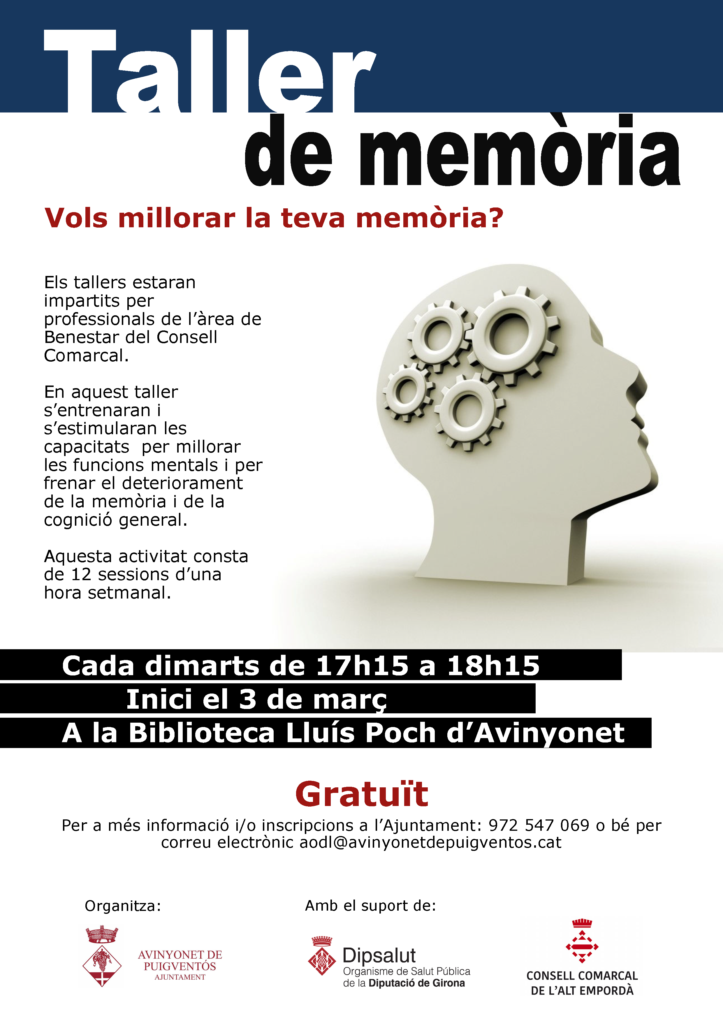 Vols millorar la teva memòria? Et proposem fer aquest taller que començarà el dimarts 3 de març!